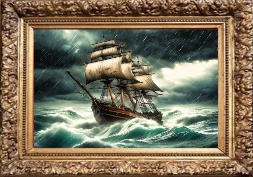 Kolacja kapitańska odbywała się w najbardziej reprezentacyjnym pomieszczeniu na statku. Nie było w nim nic luksusowego, kajuta była po prostu dość obszerna. Niewielkie okna ozdobione prostymi zasłonami nadawały pomieszczeniu przytulniejszej prezencji. Pośrodku stał okrągły stół z jasnym obrusem. Przygotowano nakrycia dla pięciu osób: komplet białej porcelany, srebrne sztućce i kieliszki do wina. Staranność, z jaką przygotowano ów skromny serwis, zaskakiwała w tych ascetycznych czasach i w miejscu tak mało eleganckim jak statek handlowy. Masywne krzesła wydawały się, co prawda, za ciężkie i nie pasowały do stołu, jednak fakt, że wszystkie pasowały do siebie i były z jednego kompletu, robił na gościach spore wrażenie. Opodal stołu ustawiono niski, masywny stolik klubowy i fotele. W pomieszczeniu nie było górnego światła, żadnych elektrycznych girland zwisających z sufitu. Na ścianach zamontowano boczne lampy, których klosze z mlecznego szkła rozlewały ciepłe światło i odcinały kajutę od grudniowej zawieruchy. W miodowej poświacie najbardziej rzucały się jednak w oczy obrazy. Naprzeciwko siebie wisiały dwa dzieła. Przykuwały uwagę rozmiarami i kontrastową odmiennością. Jeden przedstawiał statek żaglowy na wzburzonym oceanie. Morze i niebo kolorystycznie prawie nie różniły się od siebie, zdawały się być tym samym żywiołem, a jedynie białe kołnierze fal i szarość żagli pozwalały rozpoznać granice między głębią i firmamentem. Drugi obraz również przedstawiał statek z postawionymi żaglami, ale były one w brunatnym kolorze i w kształcie wachlarza. Statek płynął po spokojnym, lazurowym akwenie. W tle widniały pojedyncze góry pokryte soczyście zieloną roślinnością.