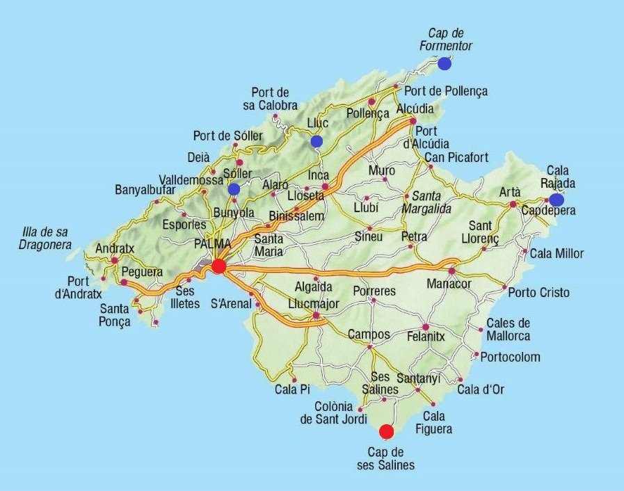 W poprzednim odcinku szukałam na Majorce śladów mauretańskich i pirackich, przemierzając Palmę i solanki majorkińskie na południu wyspy. Dziś poprowadzę przed wschód na północ wyspy. Zaczniemy od zatoki Cala Ratjada, potem udamy się na przylądek Formentor, a stamtąd do Sanctuarium de LLuc i na koniec do Soller (niebiskie punkty na mapie).
